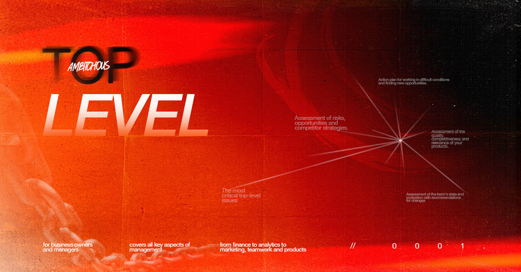 Це набір практичних інструментів та методик, розроблених на основі 15-річного досвіду роботи з різними бізнесами. Вони допомагають власникам, топ-менеджерам та їхнім командам оптимізувати продажі, покращити маркетинг, виявити проблемні зони та сфокусуватися на пріоритетних завданнях для досягнення швидких результатів.